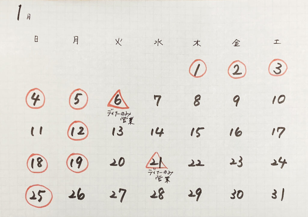1月の営業予定のお知らせ